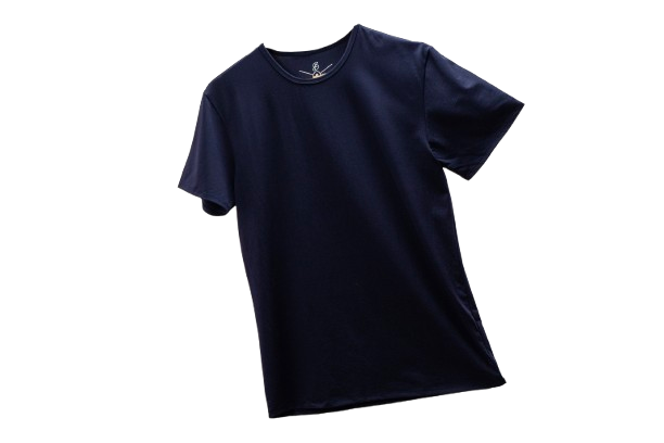 Esta camisa azul marino de cuello redondo está confeccionada con fibra de bambú, conocida por su suavidad y transpirabilidad.